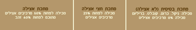ההבדלים נבחנים בכמות המרכיבים האצילים במתכת. מרכיבים אצילים הם: זהב, פלטינה, פלדיום.